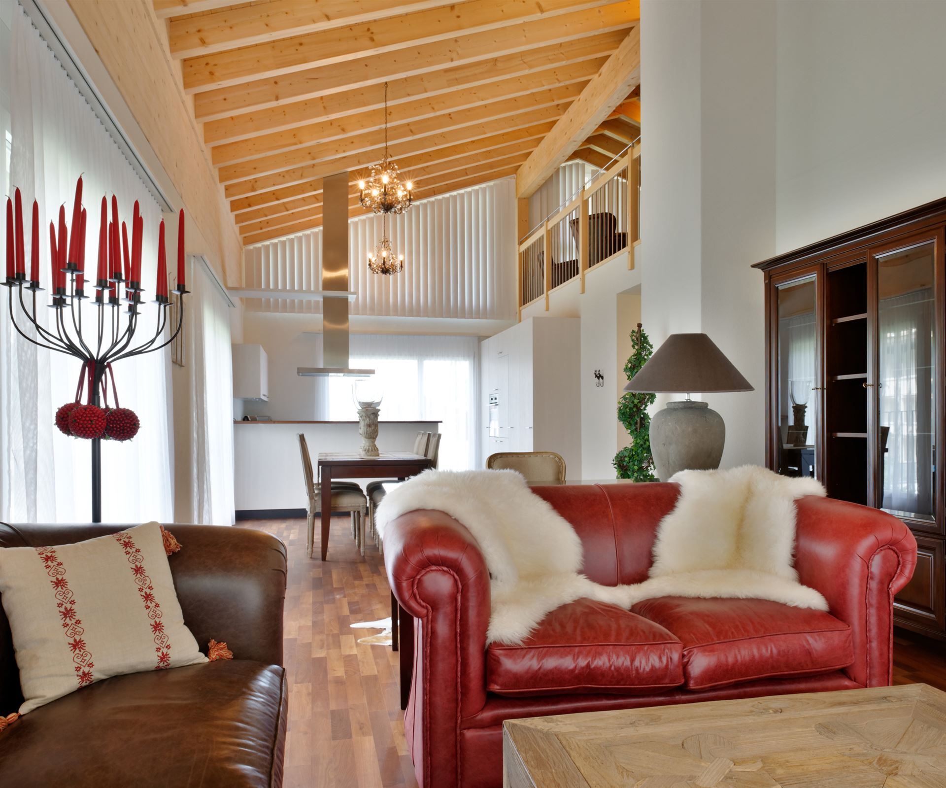 max. 7 persons, 122m2 living area, 4 rooms with gallery, 2 bedrooms, pets allowed, swimmingpool, sauna, TV, dishwasher